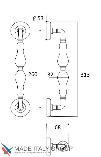 Ручка скоба Venezia "MONTE CRISTO" 313мм (260мм) D2 полированная латунь