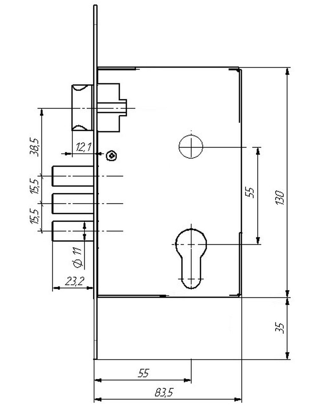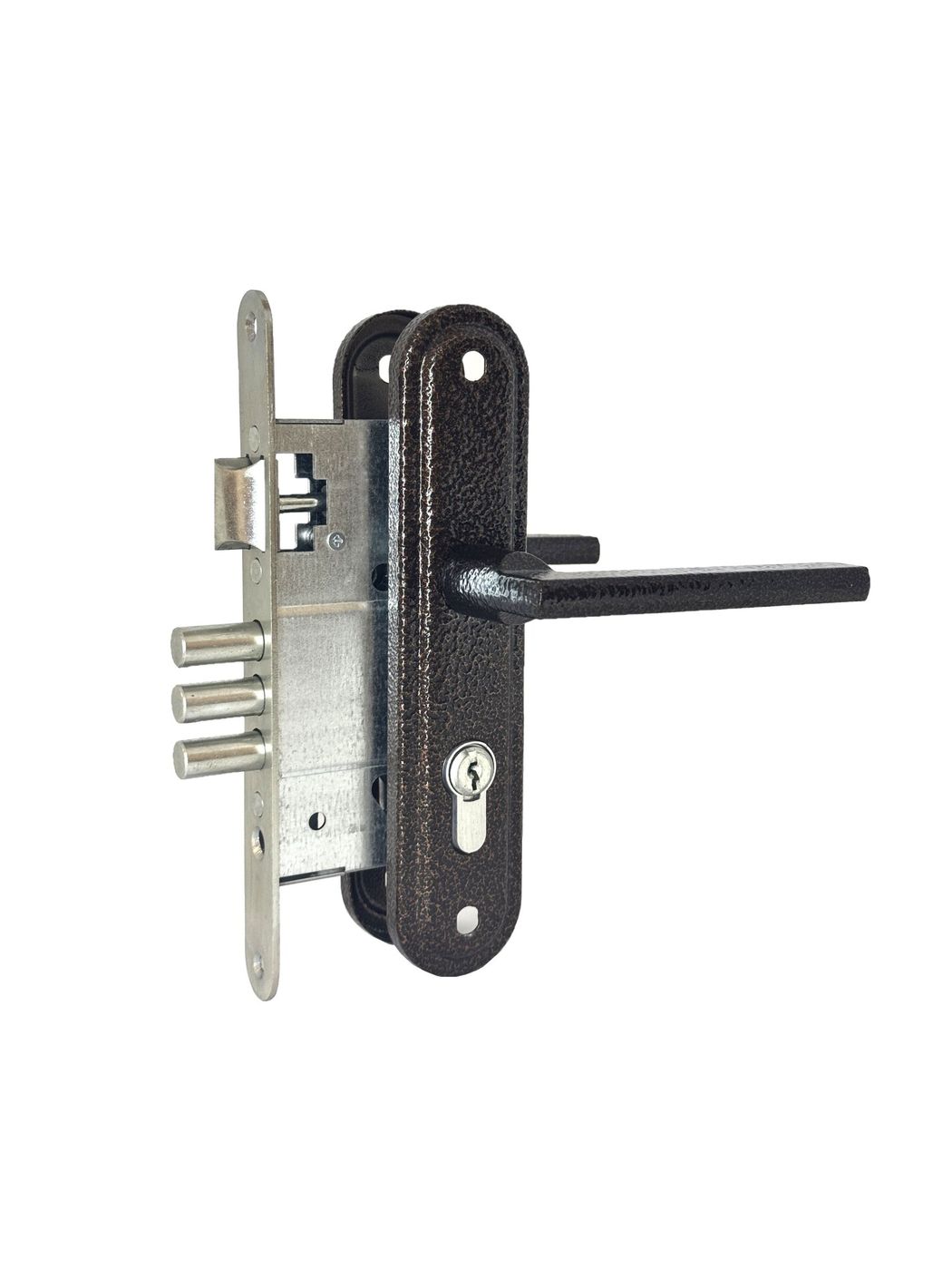 Замок врезной цилиндровый с защёлкой в комплекте с ручкой ЗВ4-3/09Р подходит для деревянных и металлических дверей. Замок с универсальной защелкой для плавного запирания двери и засовом с тремя ригелями. Комплектуется усиленными подпружиненными ручками и цилиндром 70 мм.Характеристики