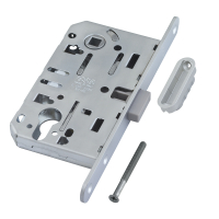B05103.50.34 Замок межкомнатный под цилиндр. Упаковка скин. Цвет матовый хром. Защелка MEDIANA POLARIS с магнитным язычком отличается необычайной бесшумностью, при нажатии на дверную ручку происходит разрыв между двумя магнитами и защелка втягивается в корпус замка. Модель разработана инженерами компании AGB и объединяет в себе надежность, качество, точность механических соединений и инновации. Все замки серии Polaris имеют один размер и взаимозаменяемы между собой.Характеристики