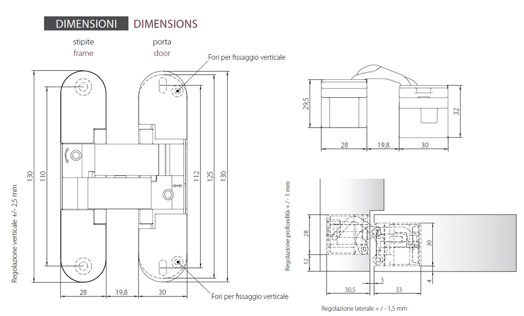 Комплект 2 шт. - Петля дверная скрытой установки Morelli HH-18 PC хром