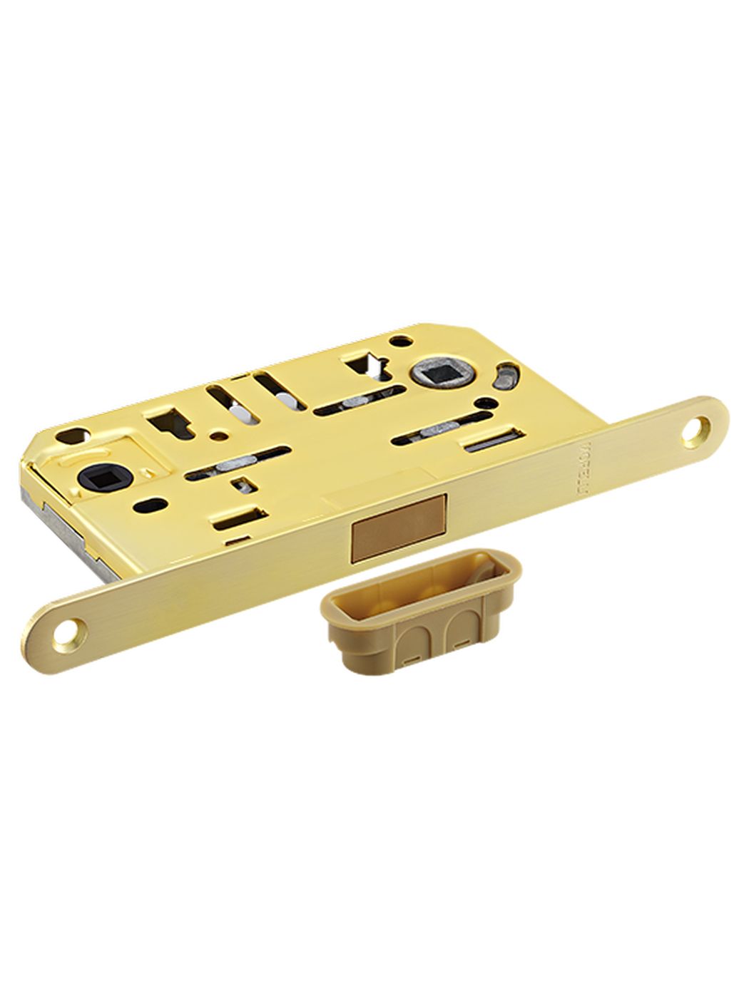Комплект дверных ручек Morelli MH-57-R6T MSG с заверткой MH-WC-R6T MSG + магнитный замок M1895 MSG, цвет матовое золото