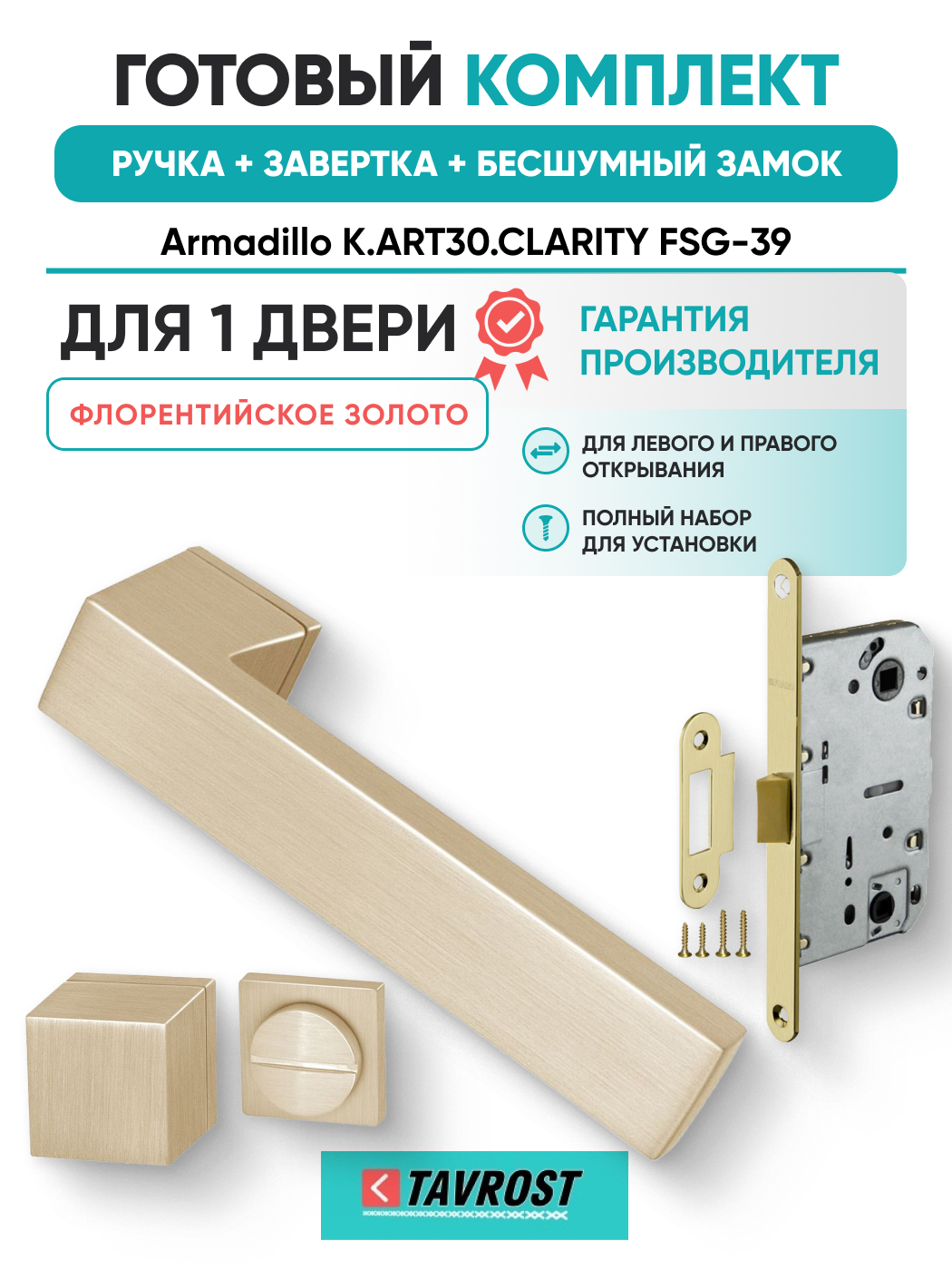 Комплект: Ручки Armadillo K.ART30.CLARITY FSG-39+Завертка+Бесшумный замок Fuaro/флорентийское золото