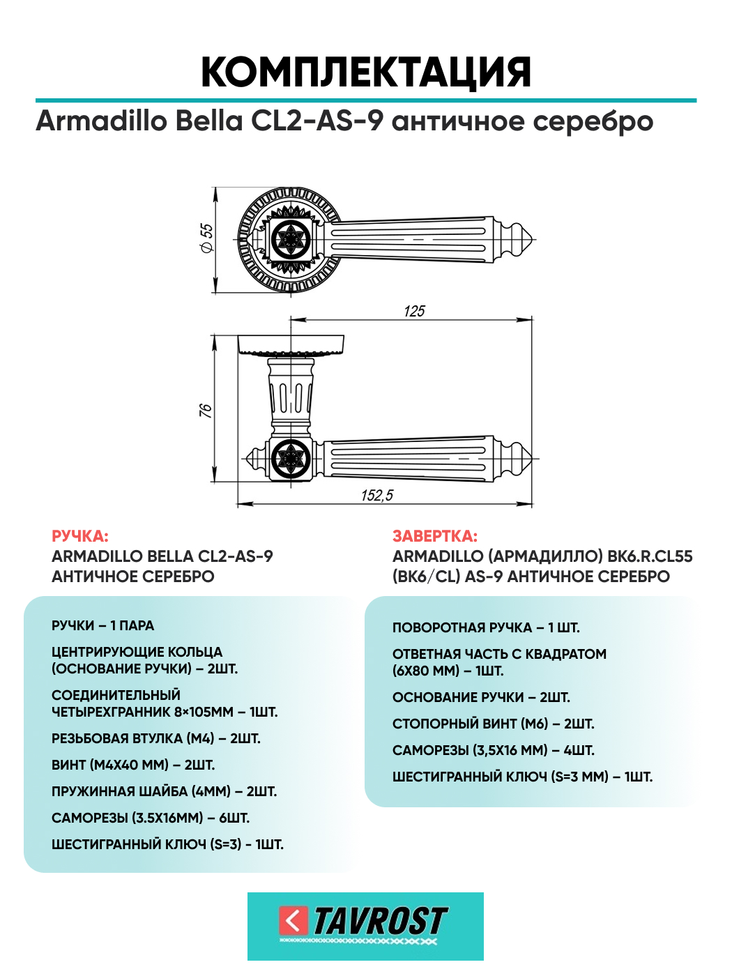Комплект: Ручки Armadillo Matador CL4-Silver-925 + Завертка BK6.R.CL55 SILVER-925 серебро 925
