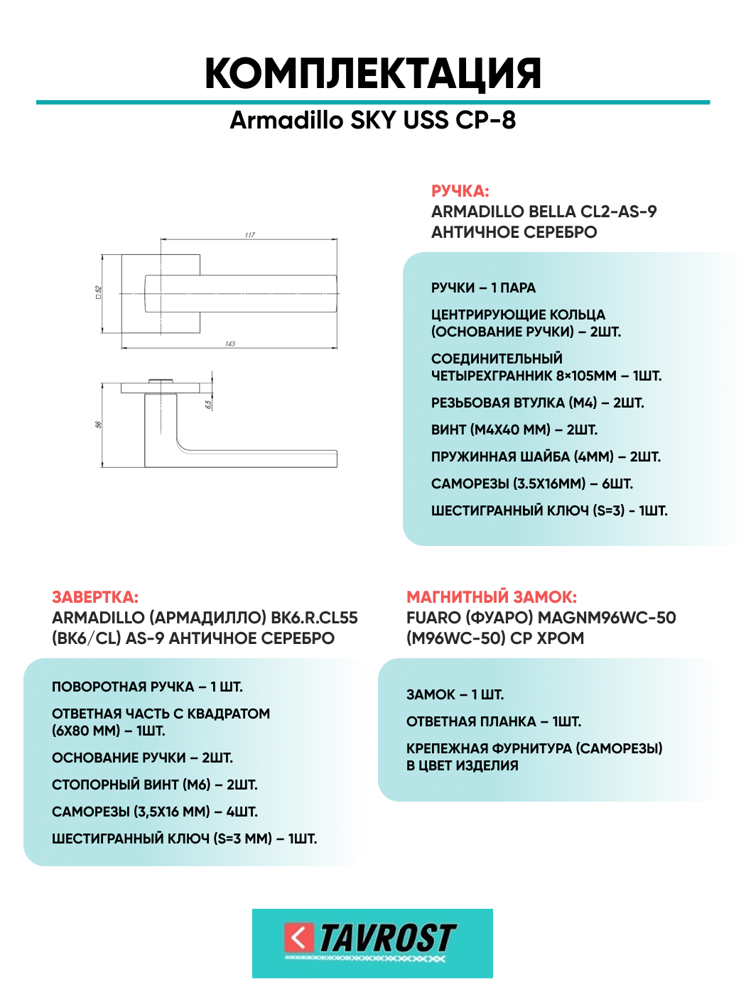 Комплект: Ручки Armadillo SKY USS CP-8+Завертка+Магнитный замок Fuaro/хром