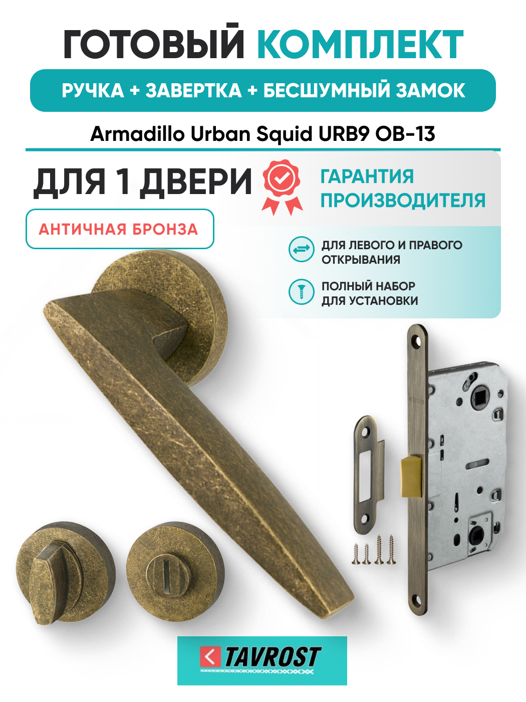 Комплект: Ручки Armadillo Urban Squid URB9 ОВ-13+Завертка+Бесшумный замок Fuaro/античная бронза