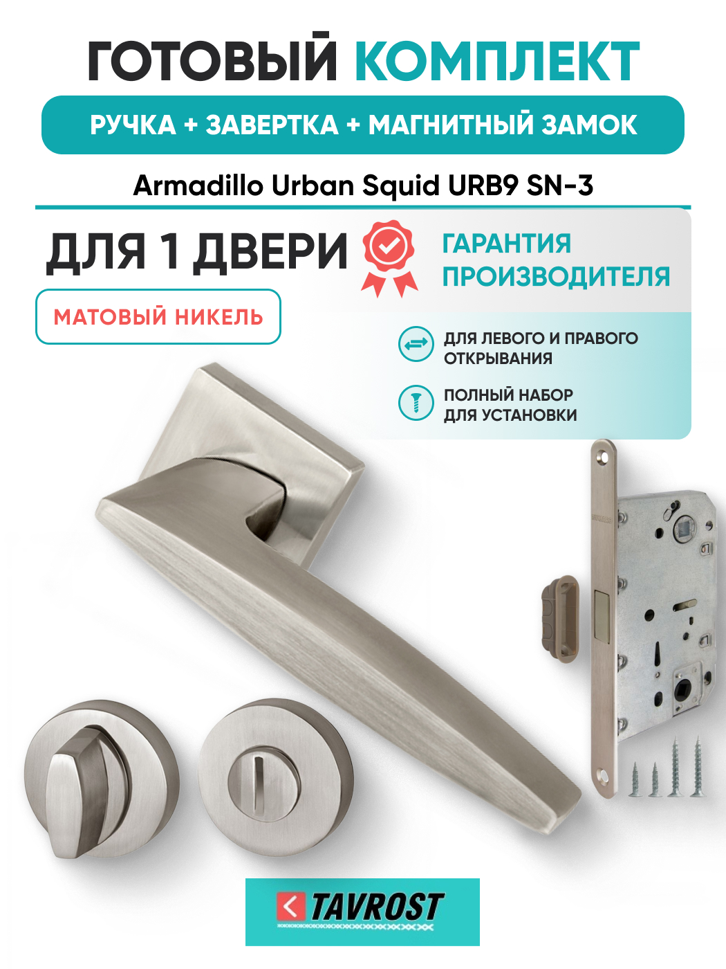 Комплект: Ручки Armadillo Urban Squid URB9 SN-3+Завертка+Магнитный замок Fuaro/матовый никель