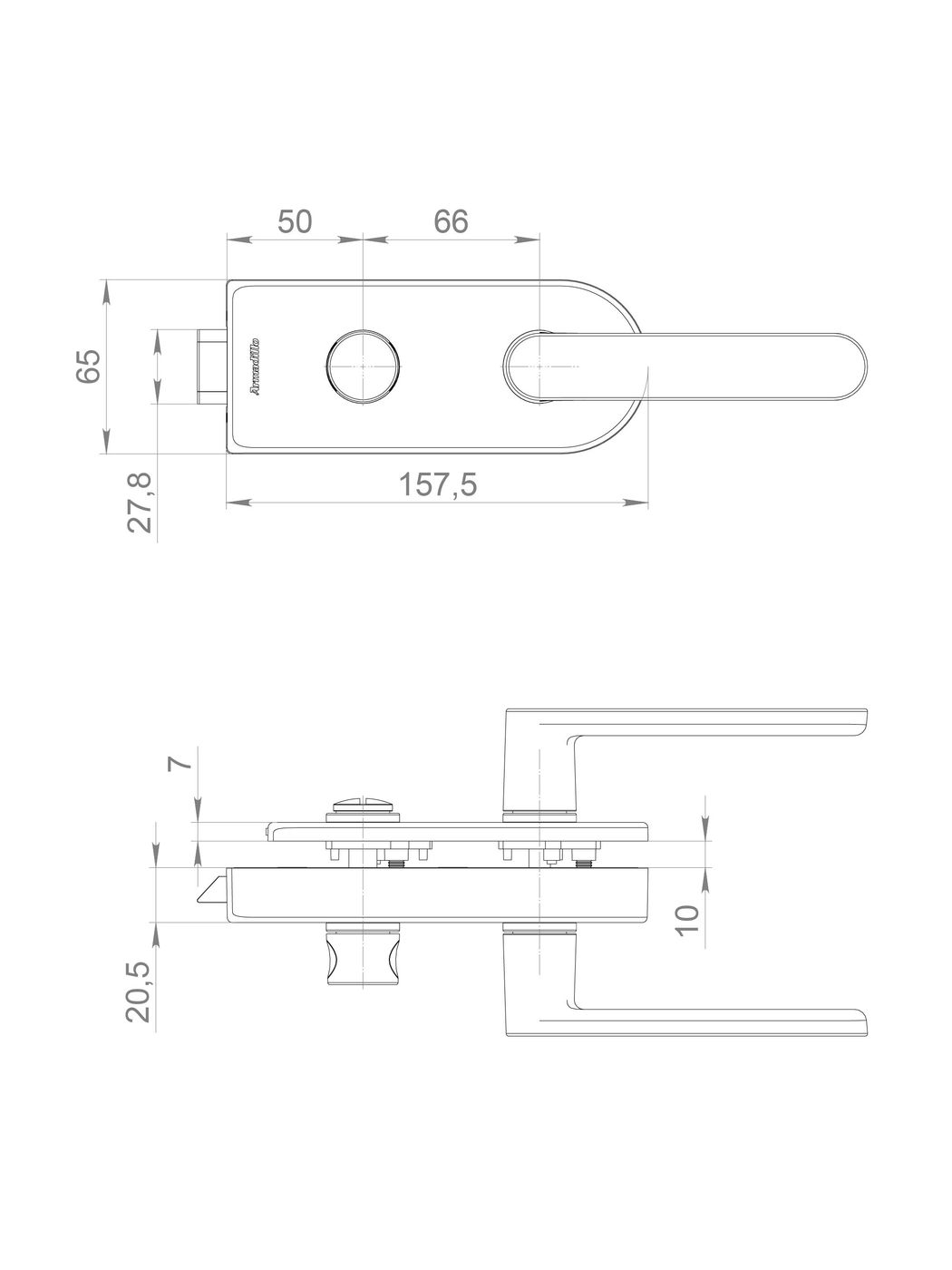 Комплект: замок+ручка Armadillo (Армадилло) для стеклянной двери Space.GL.LWC AL алюминий
