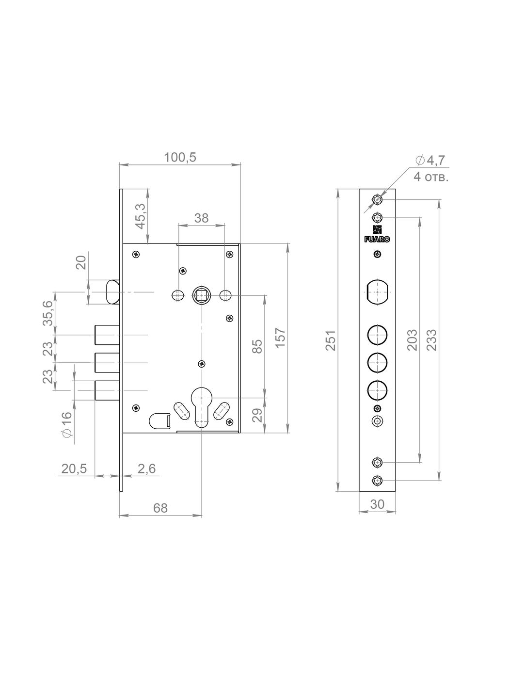 Корпус Fuaro (Фуаро) врезного замка полуавтоматический с защёлкой MDV32.21/C-65.85.3R16 S/A