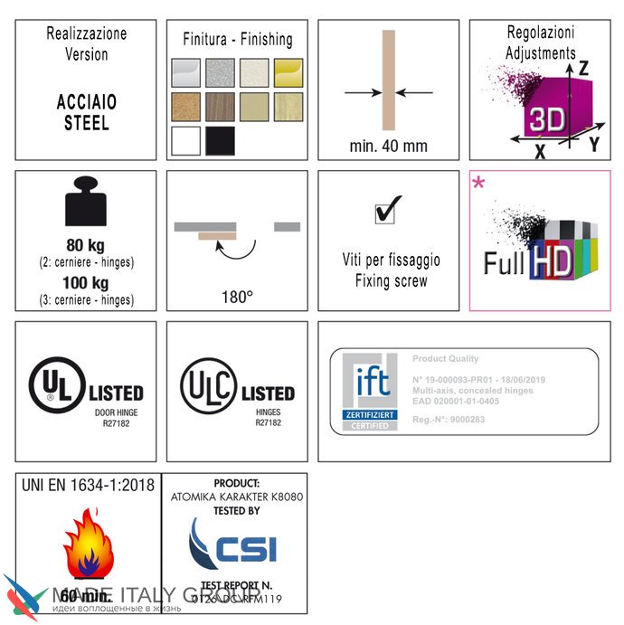 Kubica K8080 ATOMIKA KARAKTER DXSX, CS петля скрытая универсальная МАТОВЫЙ ХРОМ (100 kg)