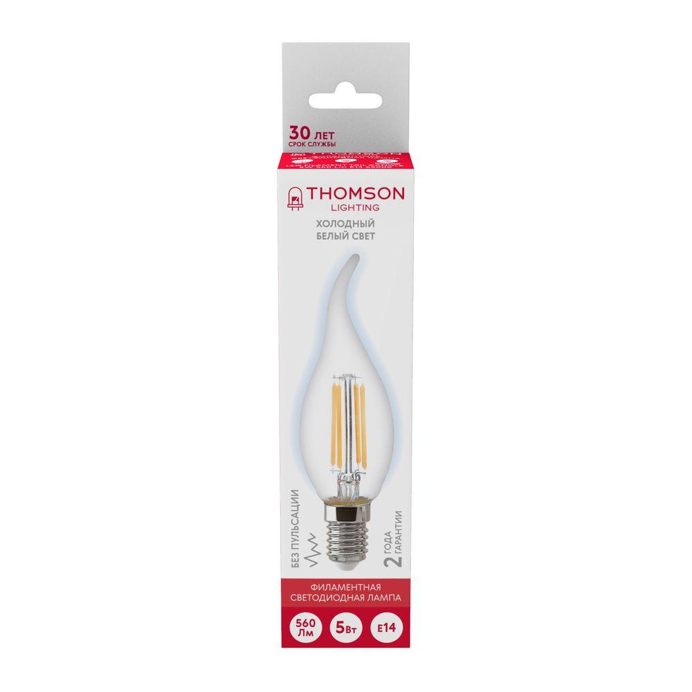 -----Лампа светодиодная филаментная Thomson E14 5W 6500K свеча на ветру прозрачная TH-B2335