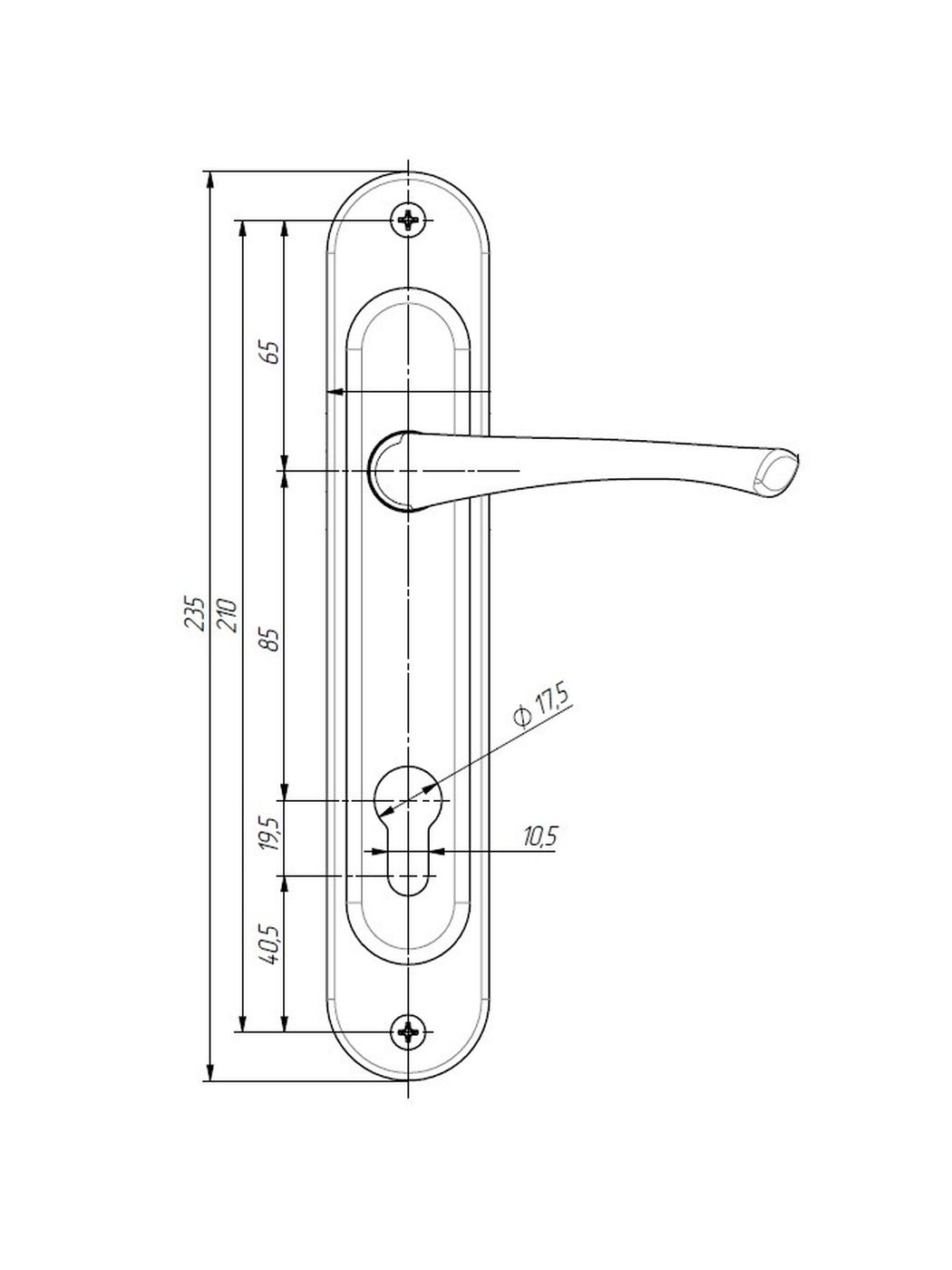 Межосевое расстояние 85 мм.Подходит для установки в деревянные и металлические двери толщиной 35-50 мм.