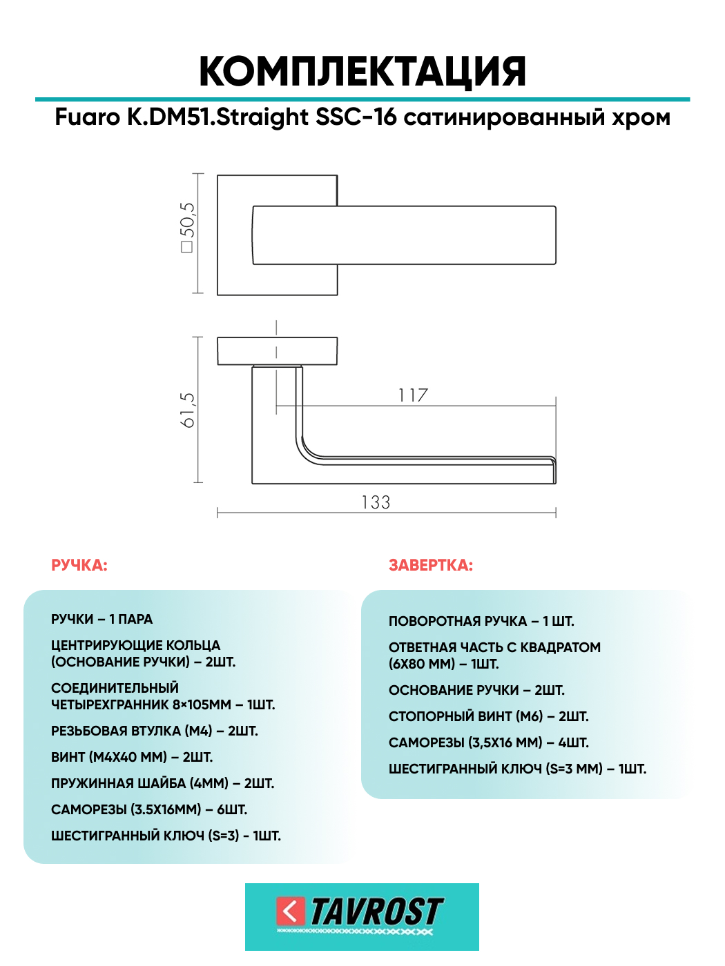Ручка дверная Fuaro (Фуаро) межкомнатная K.DM51.Straight (Straight DM) SSC-16 сатинированный хром Набор 1