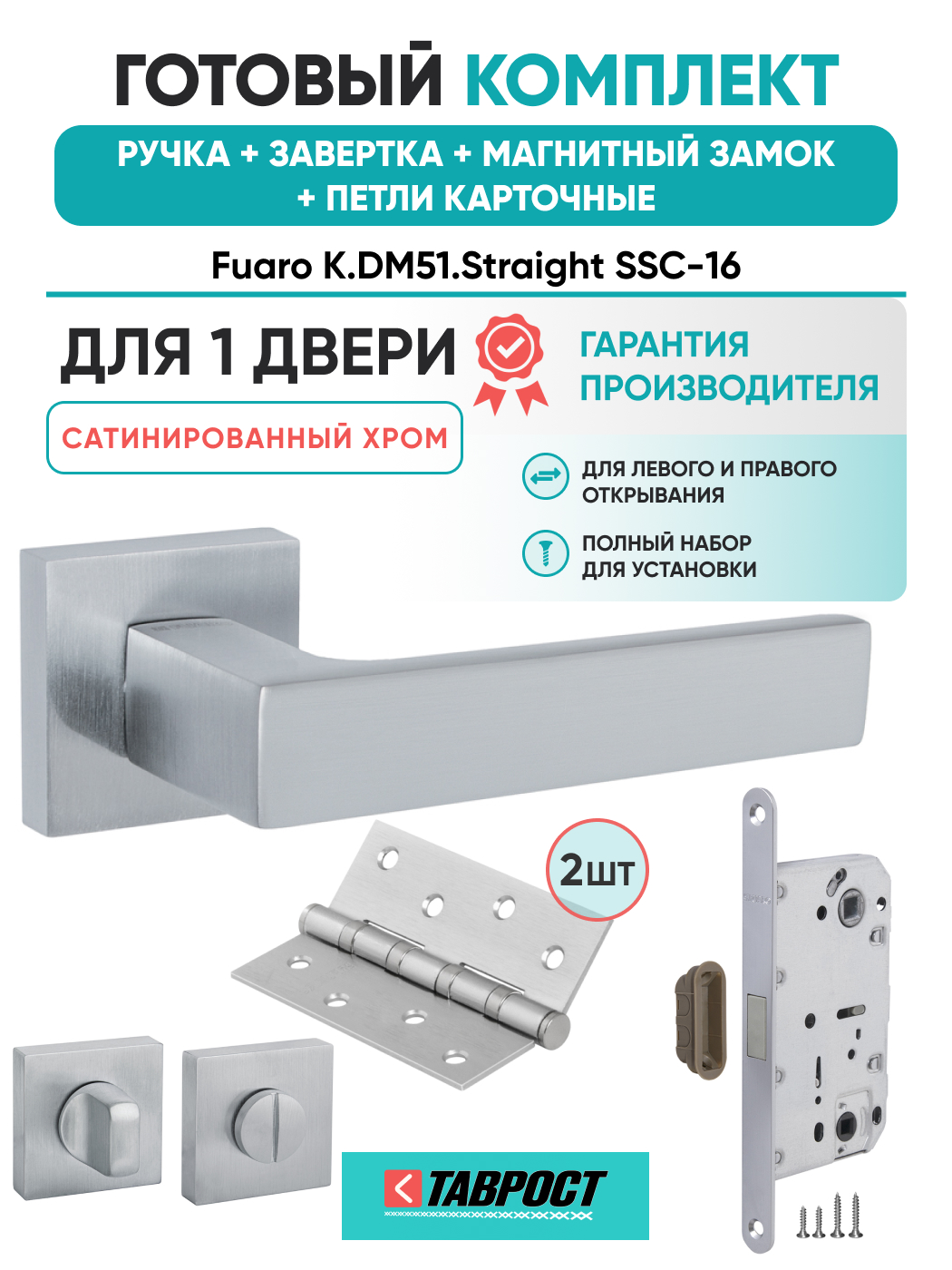 Ручка дверная Fuaro (Фуаро) межкомнатная K.DM51.Straight (Straight DM) SSC-16 сатинированный хром Набор 4