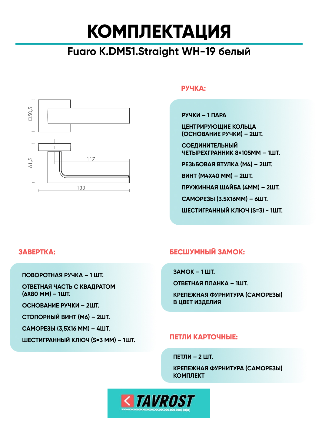 Ручка дверная Fuaro (Фуаро) межкомнатная K.DM51.Straight (Straight DM) WH-19 белый Набор 5