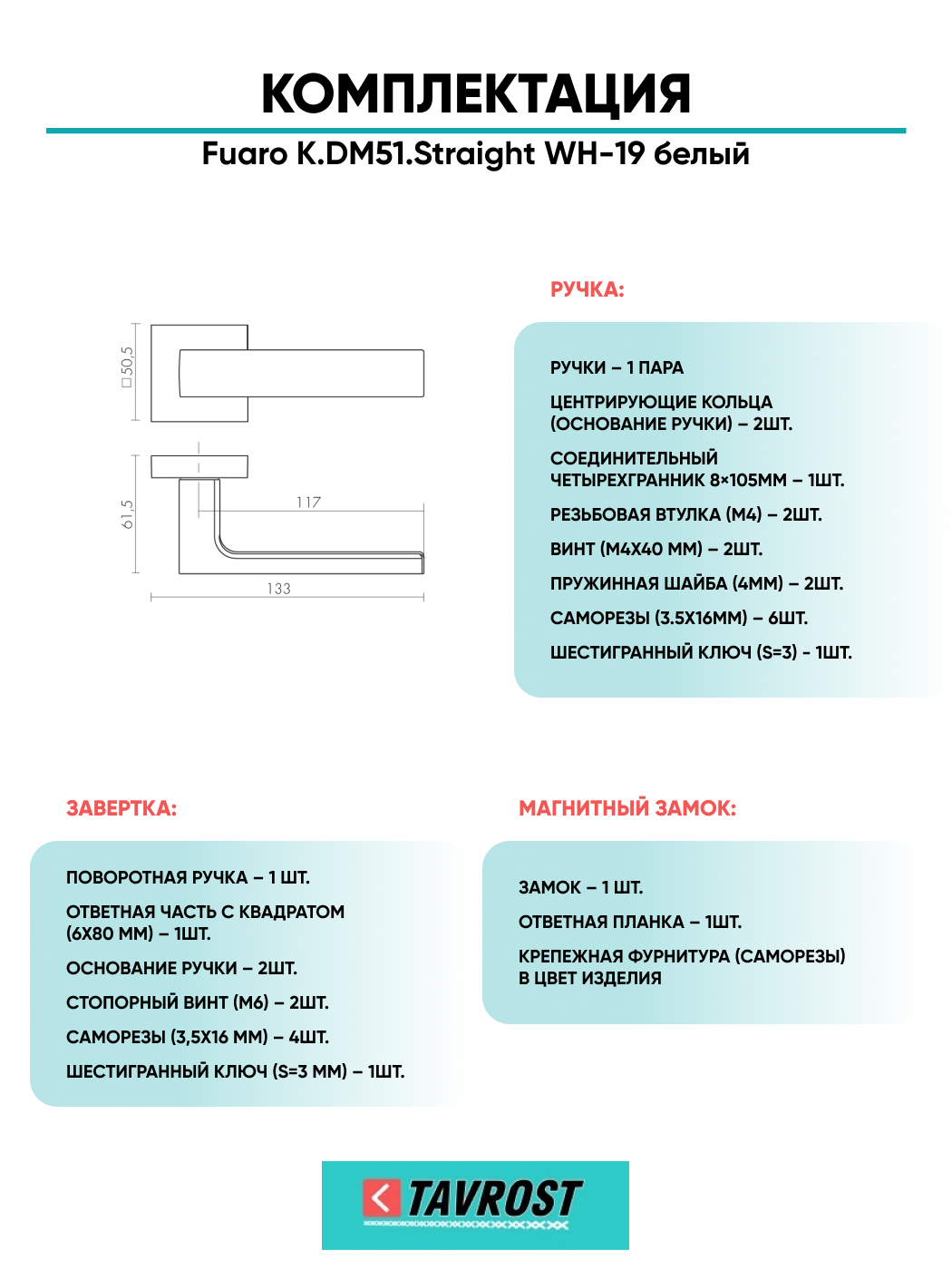 Ручка дверная Fuaro (Фуаро) межкомнатная K.DM51.Straight (Straight DM) WH-19 белый Набор 2