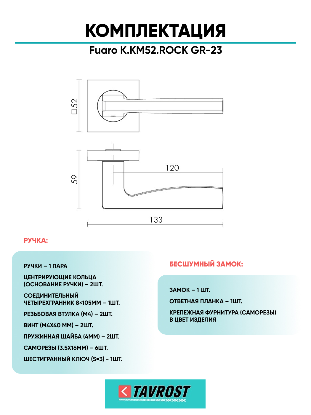 Ручка дверная Fuaro (Фуаро) межкомнатная K.KM52.ROCK (ROCK KM) GR-23 графит Набор 7