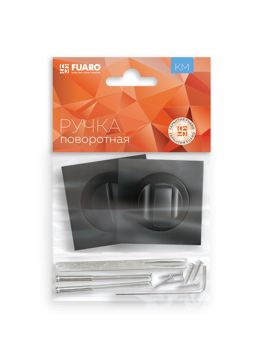Ручка дверная межкомнатная:Прямые линии, безупречная эргономика и лаконичный дизайн в стиле hi-tech свойственны дверным ручкам серии KM. Дверная ручка на раздельном основании Fuaro SAMPLE KM на квадратном основании подходит для установки на внутренние входные и межкомнатные двери. Максимальная масса двери 60 кг. Посадочные размеры оснований совместимы со всеми типами межкомнатных механизмов. Материал изготовления: ZAMAK (сплав цинка, алюминия, магния и меди). Гальваническое покрытие прошло тест на устойчивость к коррозии в соляном тумане - более 96 часов. Ресурс работы дверных ручек более 150 000 циклов открывания/закрывания, что гарантирует безотказную работу двери более чем на 10 лет. Стяжные винты в комплекте обеспечивают более прочное крепление на полотне двери, подходят для установки на двери толщиной 35-55 мм. Цвет: графит. В комплект входят: стяжные винты, соединительный квадрат 8x105 мм, саморезы, фиксирующие винты, шестигранник.
