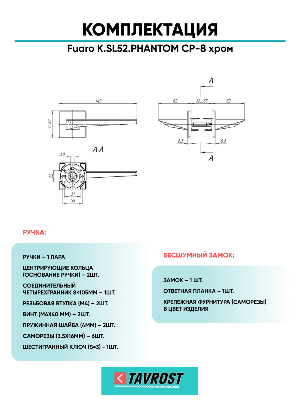 Ручка дверная Fuaro (Фуаро) межкомнатная K.SL52.PHANTOM (PHANTOM SL) CP-8 хром Набор 7