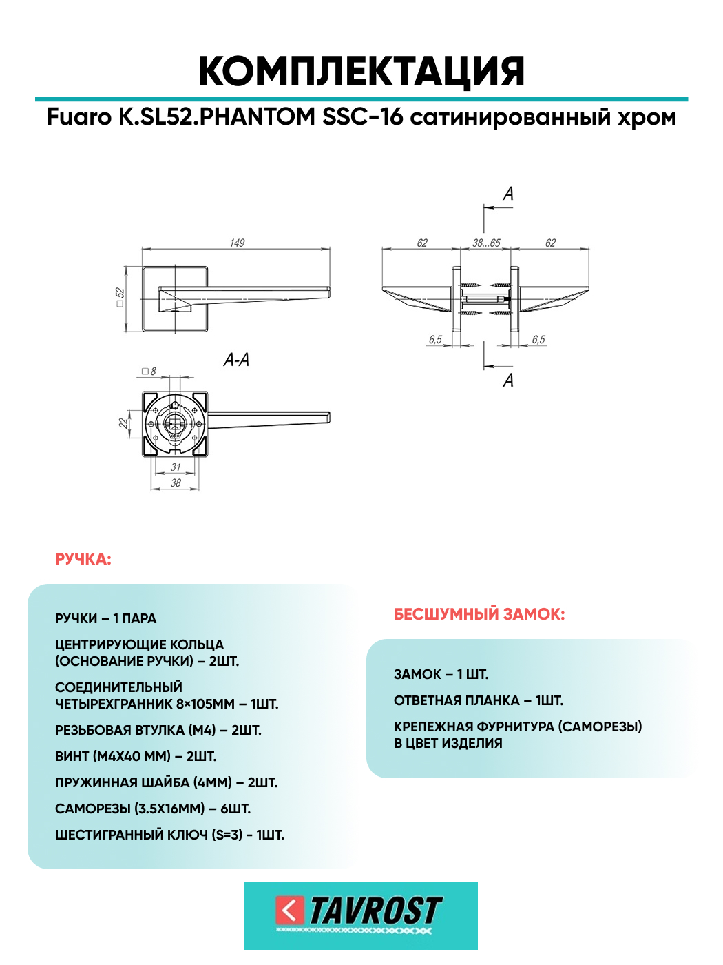 Ручка дверная Fuaro (Фуаро) межкомнатная K.SL52.PHANTOM (PHANTOM SL) SSC-16 сатинированный хром Набор 7