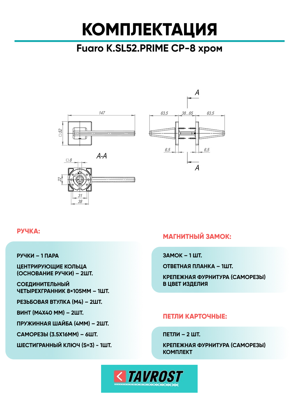 =this.property.NAME_2 (страна производства Китай , тип конструкции: ), выпускается в заводских условиях, с соблюдением всех технологических требований производства и контролем на всех этапах производства. Ручка изготовлена из материала , который широко используется при производстве дверной фурнитуры, в цвете хром. Ручки выполнены в стиле , Комплекты, что придаст межкомнатным дверям свою индивидуальность. Ручки продаются комплектами и подходят для дверей левого и правого открывания. В комплекте содержится полный набор для установки на одну дверь (соединительный штифт, шурупы и т.д). Размеры ручки: длина , ширина , высота . Вся продукция производителя Фуаро обладает проверенным временем качеством, подкрепленным заводской гарантией.