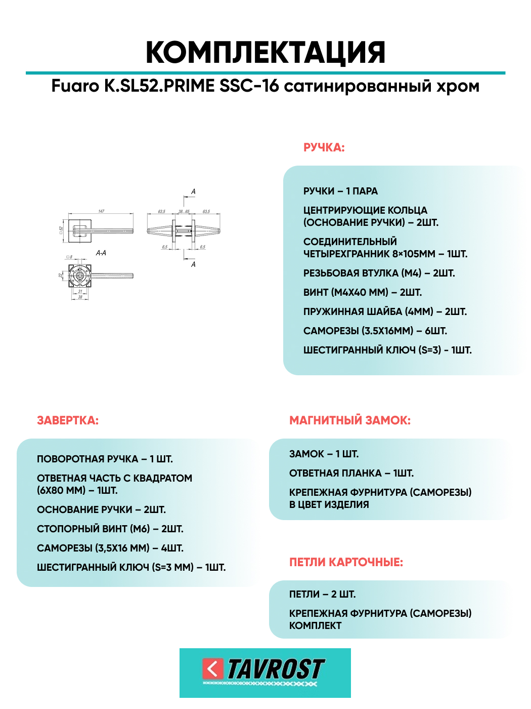 Ручка дверная Fuaro (Фуаро) межкомнатная K.SL52.PRIME (PRIME SL) SSC-16 сатинированный хром Набор 4