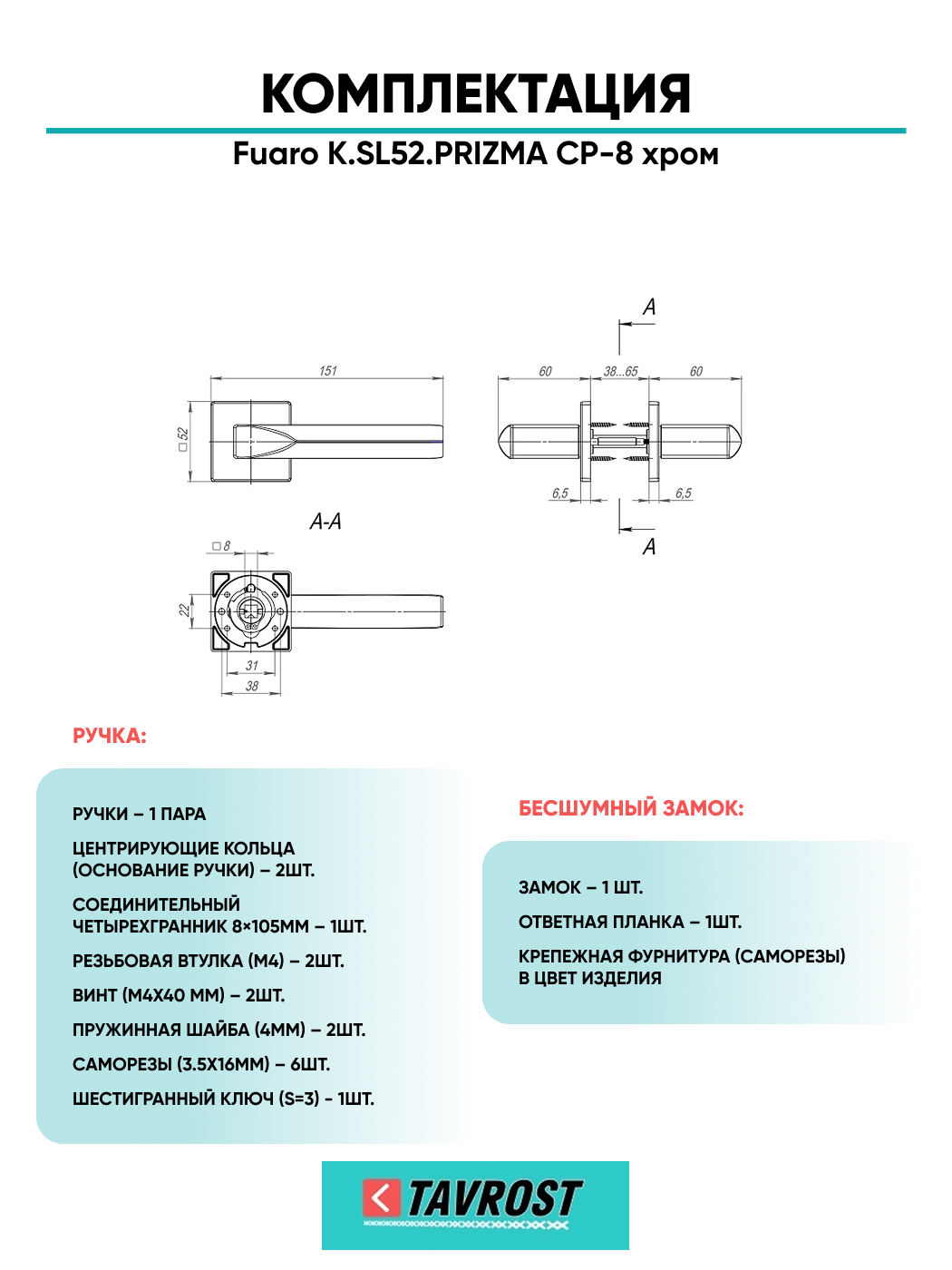 Ручка дверная Fuaro (Фуаро) межкомнатная K.SL52.PRIZMA (PRIZMA SL) CP-8 хром Набор 7