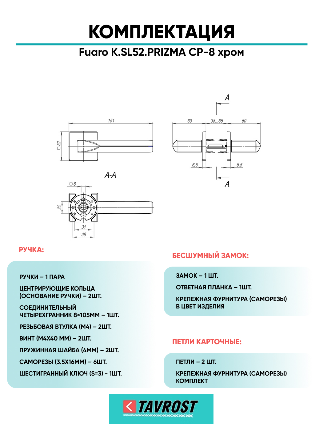 Ручка дверная Fuaro (Фуаро) межкомнатная K.SL52.PRIZMA (PRIZMA SL) CP-8 хром Набор 9