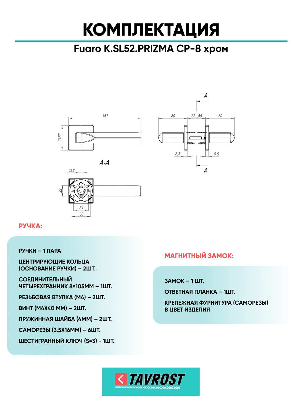 =this.property.NAME_2 (страна производства Китай , тип конструкции: ), выпускается в заводских условиях, с соблюдением всех технологических требований производства и контролем на всех этапах производства. Ручка изготовлена из материала , который широко используется при производстве дверной фурнитуры, в цвете хром. Ручки выполнены в стиле , Комплекты, что придаст межкомнатным дверям свою индивидуальность. Ручки продаются комплектами и подходят для дверей левого и правого открывания. В комплекте содержится полный набор для установки на одну дверь (соединительный штифт, шурупы и т.д). Размеры ручки: длина , ширина , высота . Вся продукция производителя Фуаро обладает проверенным временем качеством, подкрепленным заводской гарантией.