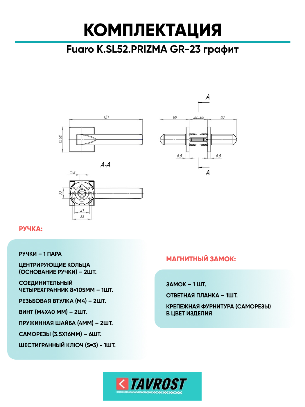 Ручка дверная Fuaro (Фуаро) межкомнатная K.SL52.PRIZMA (PRIZMA SL) GR-23 графит Набор 6