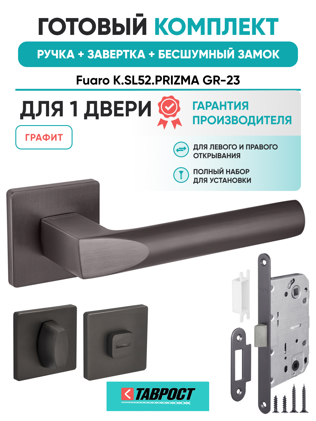 =this.property.NAME_2 (страна производства Китай , тип конструкции: ), выпускается в заводских условиях, с соблюдением всех технологических требований производства и контролем на всех этапах производства. Ручка изготовлена из материала , который широко используется при производстве дверной фурнитуры, в цвете графит. Ручки выполнены в стиле , Комплекты, что придаст межкомнатным дверям свою индивидуальность. Ручки продаются комплектами и подходят для дверей левого и правого открывания. В комплекте содержится полный набор для установки на одну дверь (соединительный штифт, шурупы и т.д). Размеры ручки: длина , ширина , высота . Вся продукция производителя Фуаро обладает проверенным временем качеством, подкрепленным заводской гарантией.