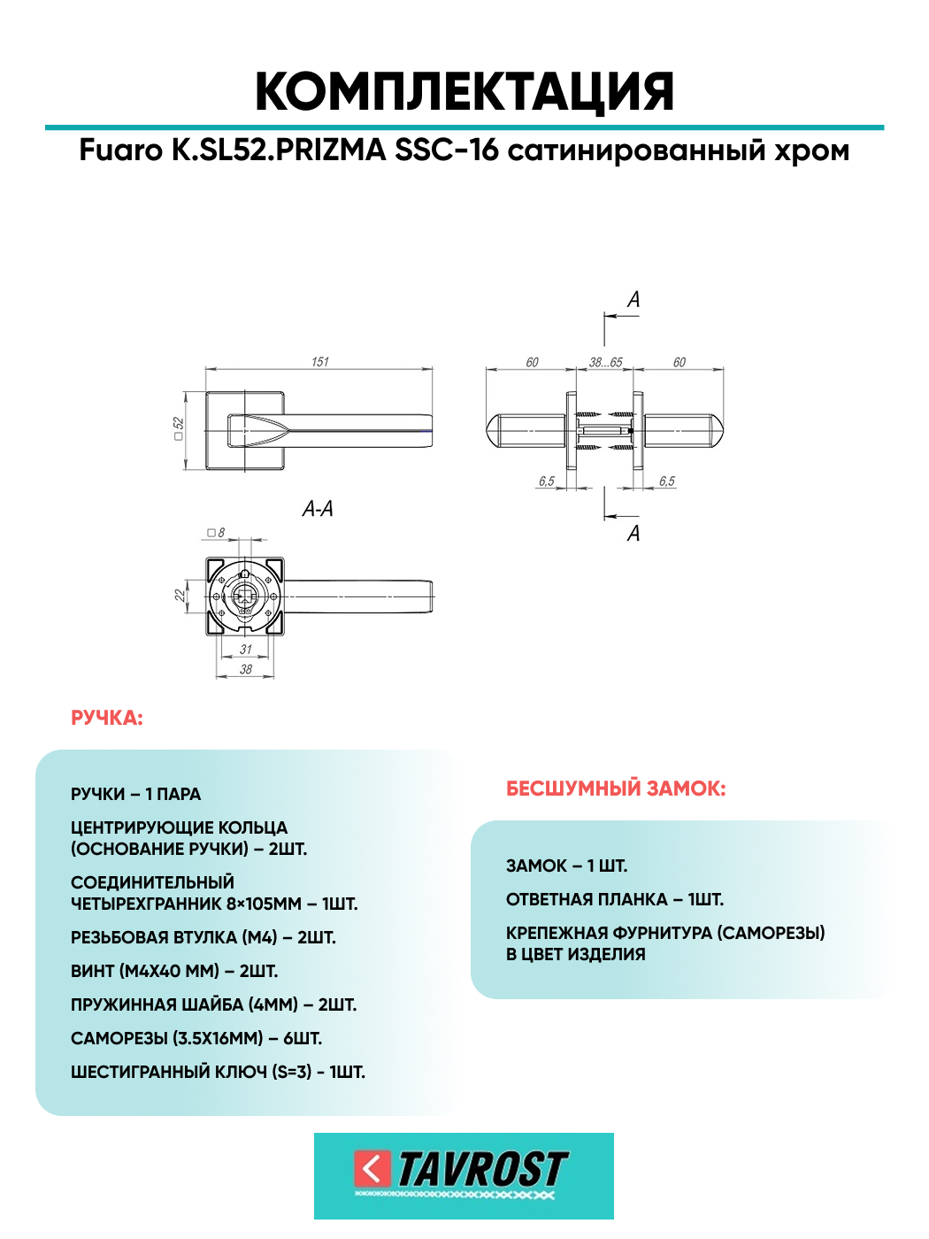 Ручка дверная Fuaro (Фуаро) межкомнатная K.SL52.PRIZMA (PRIZMA SL) SSC-16 сатинированный хром Набор 7