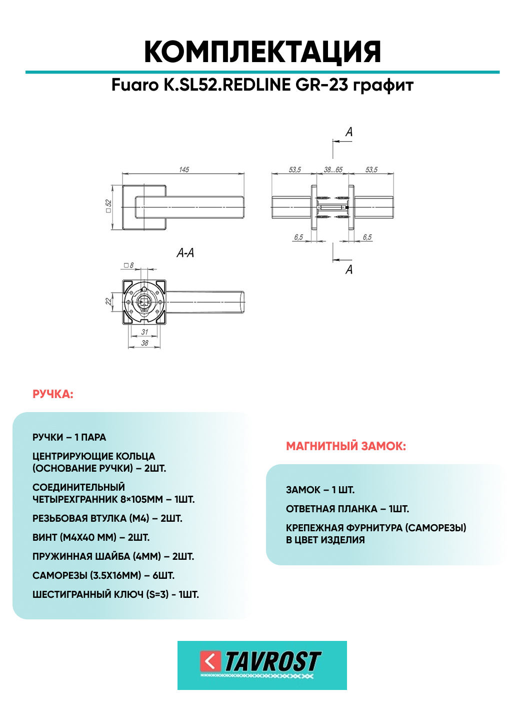 =this.property.NAME_2 (страна производства Китай , тип конструкции: ), выпускается в заводских условиях, с соблюдением всех технологических требований производства и контролем на всех этапах производства. Ручка изготовлена из материала , который широко используется при производстве дверной фурнитуры, в цвете графит. Ручки выполнены в стиле , Комплекты, что придаст межкомнатным дверям свою индивидуальность. Ручки продаются комплектами и подходят для дверей левого и правого открывания. В комплекте содержится полный набор для установки на одну дверь (соединительный штифт, шурупы и т.д). Размеры ручки: длина , ширина , высота . Вся продукция производителя Фуаро обладает проверенным временем качеством, подкрепленным заводской гарантией.