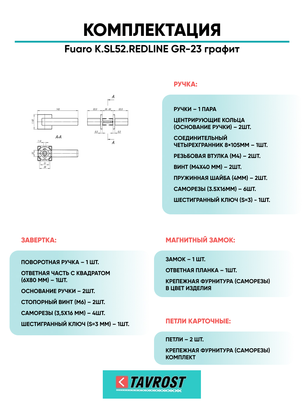 Ручка дверная Fuaro (Фуаро) межкомнатная K.SL52.REDLINE (RED LINE SL) GR-23 графит Набор 4