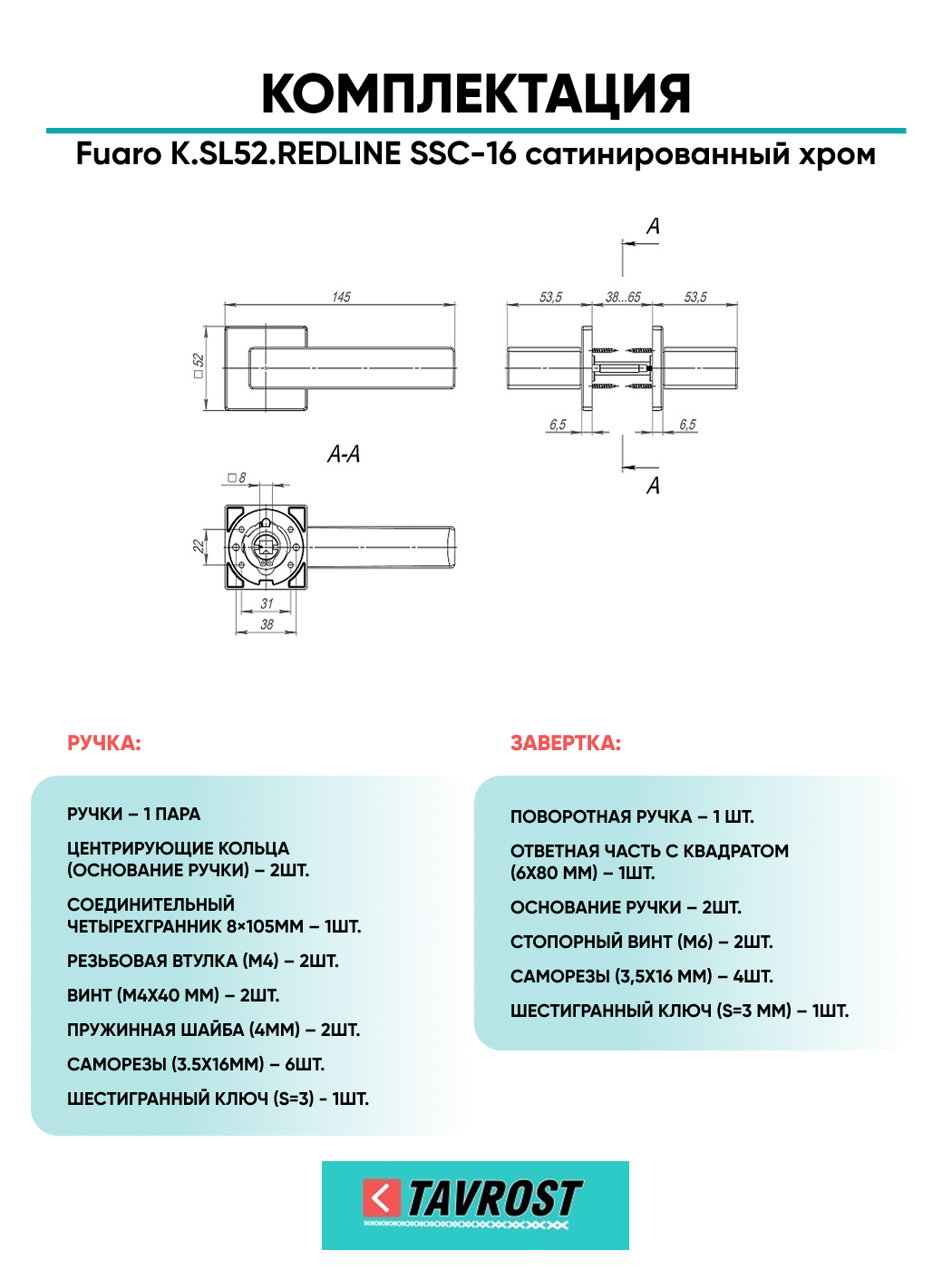 Ручка дверная Fuaro (Фуаро) межкомнатная K.SL52.REDLINE (RED LINE SL) SSC-16 сатинированный хром Набор 1