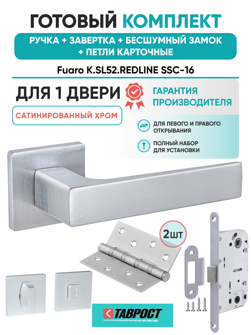 Ручка дверная Fuaro (Фуаро) межкомнатная K.SL52.REDLINE (RED LINE SL) SSC-16 сатинированный хром Набор 5