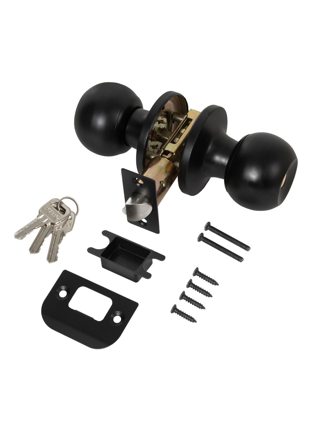 Комплект дверных ручек с защелкой (KNOB) Punto предназначен для установки в межкомнатные двери толщиной 35-45 мм. Подходит для дверей правого и левого открывания. Гальваническое покрытие прошло тест на устойчивость к коррозии в соляном тумане и соответствует 1 классу ГОСТ. Бэксет защелки регулируется - 60/70 мм. Материал изготовления: сталь. Комплектация: защелка, ответная планка с декоративной заглушкой, дверные ручки, крепежная фурнитура, шаблон и инструкция по установке.