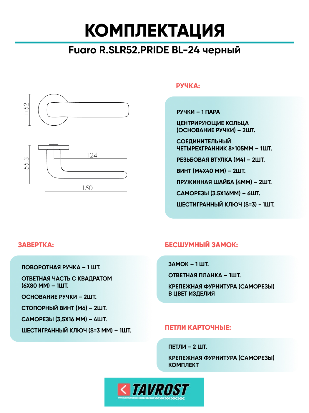 Ручка дверная Fuaro (Фуаро) межкомнатная R.SLR52.PRIDE BL-24 черный Набор 5