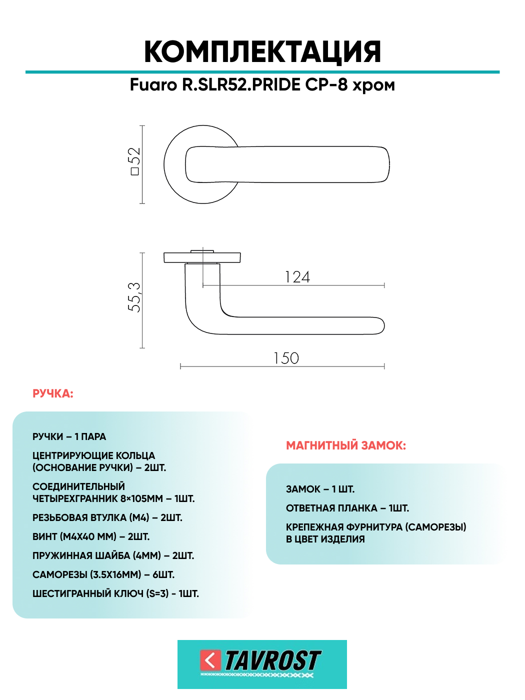 =this.property.NAME_2 (страна производства Китай , тип конструкции: ), выпускается в заводских условиях, с соблюдением всех технологических требований производства и контролем на всех этапах производства. Ручка изготовлена из материала , который широко используется при производстве дверной фурнитуры, в цвете хром. Ручки выполнены в стиле , Комплекты, что придаст межкомнатным дверям свою индивидуальность. Ручки продаются комплектами и подходят для дверей левого и правого открывания. В комплекте содержится полный набор для установки на одну дверь (соединительный штифт, шурупы и т.д). Размеры ручки: длина , ширина , высота . Вся продукция производителя Фуаро обладает проверенным временем качеством, подкрепленным заводской гарантией.