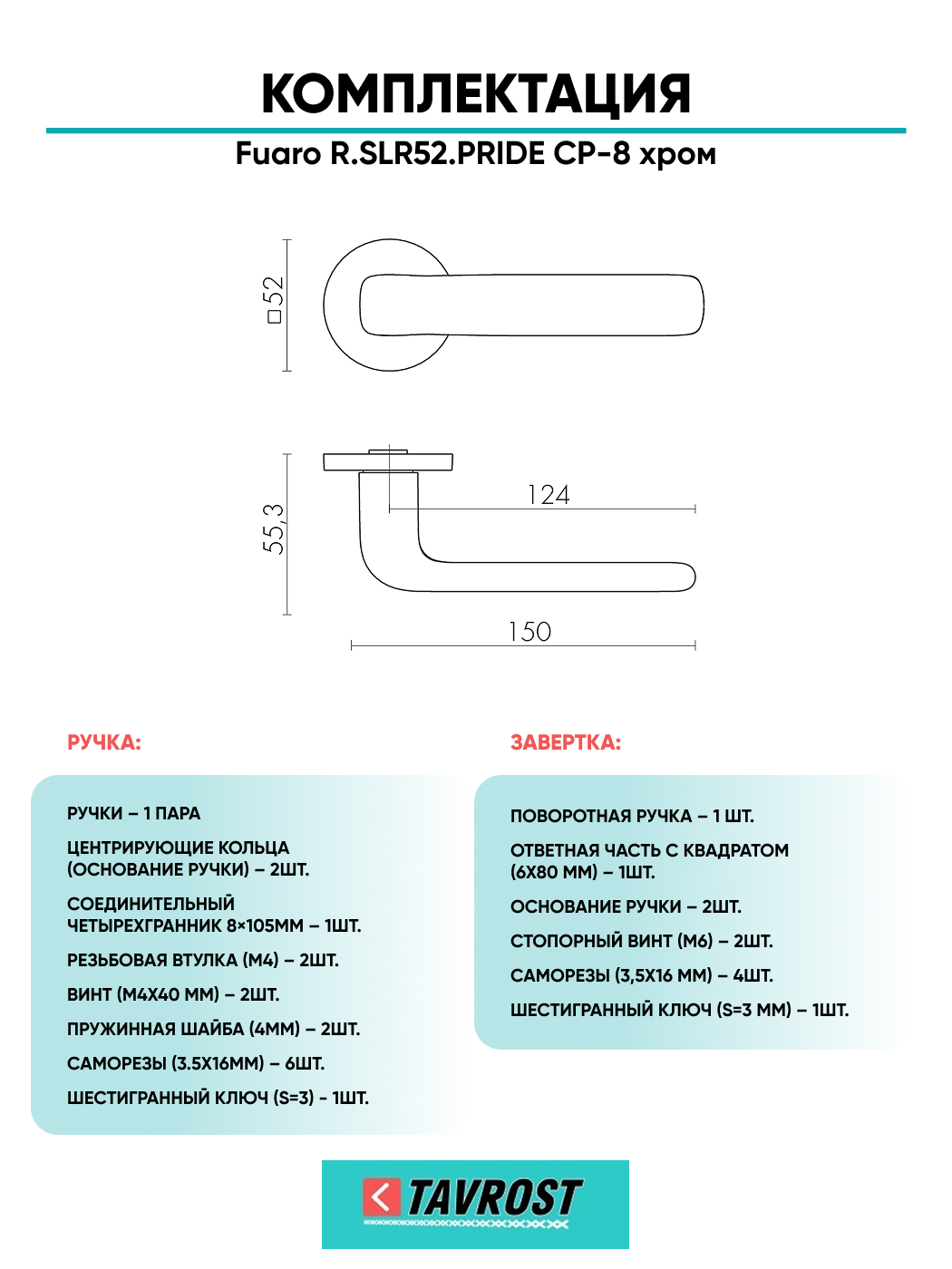 Ручка дверная Fuaro (Фуаро) межкомнатная R.SLR52.PRIDE CP-8 хром Набор 1