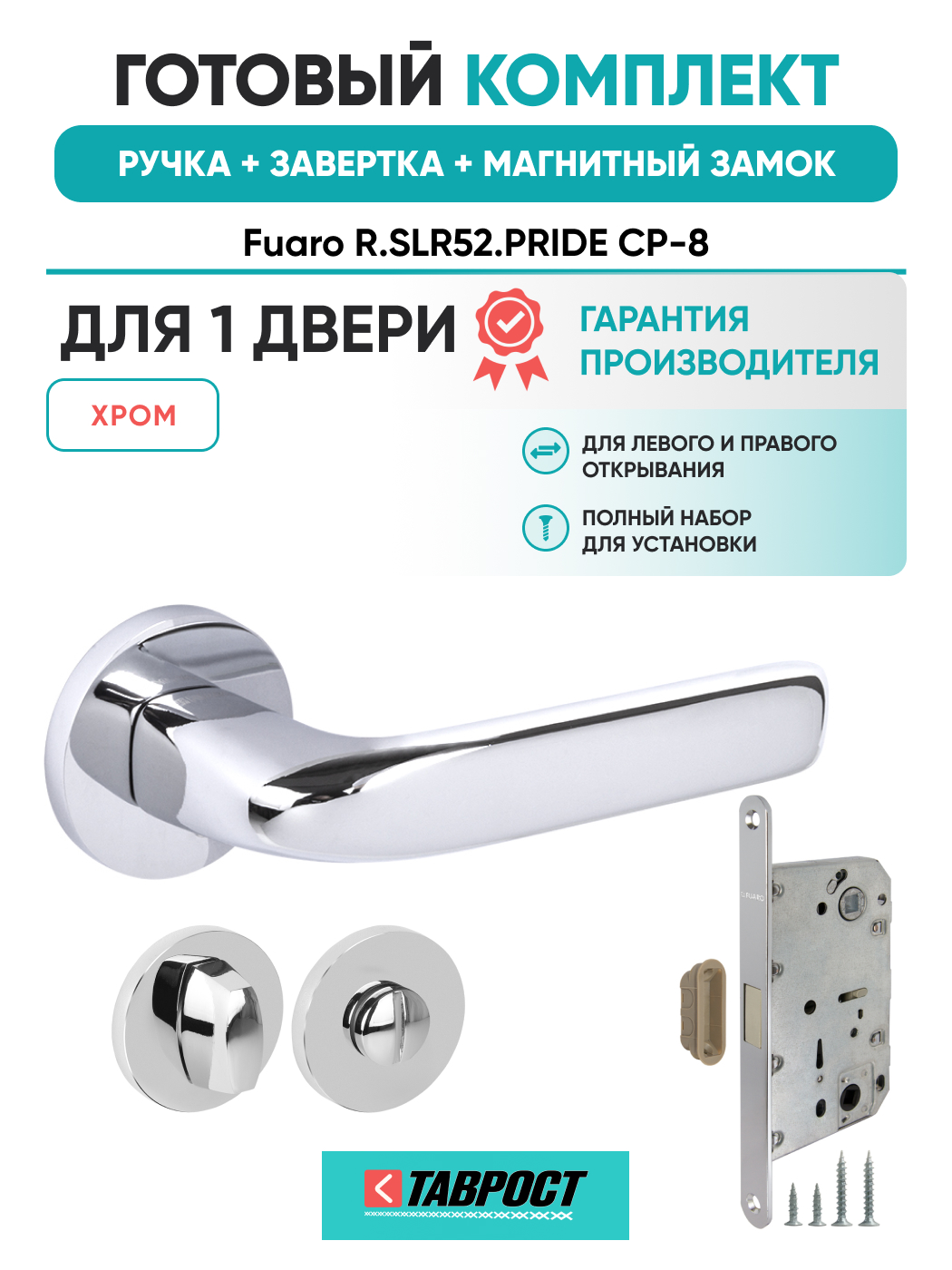 =this.property.NAME_2 (страна производства Китай , тип конструкции: ), выпускается в заводских условиях, с соблюдением всех технологических требований производства и контролем на всех этапах производства. Ручка изготовлена из материала , который широко используется при производстве дверной фурнитуры, в цвете хром. Ручки выполнены в стиле , Комплекты, что придаст межкомнатным дверям свою индивидуальность. Ручки продаются комплектами и подходят для дверей левого и правого открывания. В комплекте содержится полный набор для установки на одну дверь (соединительный штифт, шурупы и т.д). Размеры ручки: длина , ширина , высота . Вся продукция производителя Фуаро обладает проверенным временем качеством, подкрепленным заводской гарантией.