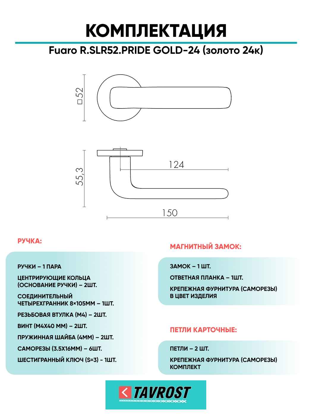 =this.property.NAME_2 (страна производства Китай , тип конструкции: ), выпускается в заводских условиях, с соблюдением всех технологических требований производства и контролем на всех этапах производства. Ручка изготовлена из материала , который широко используется при производстве дверной фурнитуры, в цвете золото. Ручки выполнены в стиле , Комплекты, что придаст межкомнатным дверям свою индивидуальность. Ручки продаются комплектами и подходят для дверей левого и правого открывания. В комплекте содержится полный набор для установки на одну дверь (соединительный штифт, шурупы и т.д). Размеры ручки: длина , ширина , высота . Вся продукция производителя Фуаро обладает проверенным временем качеством, подкрепленным заводской гарантией.