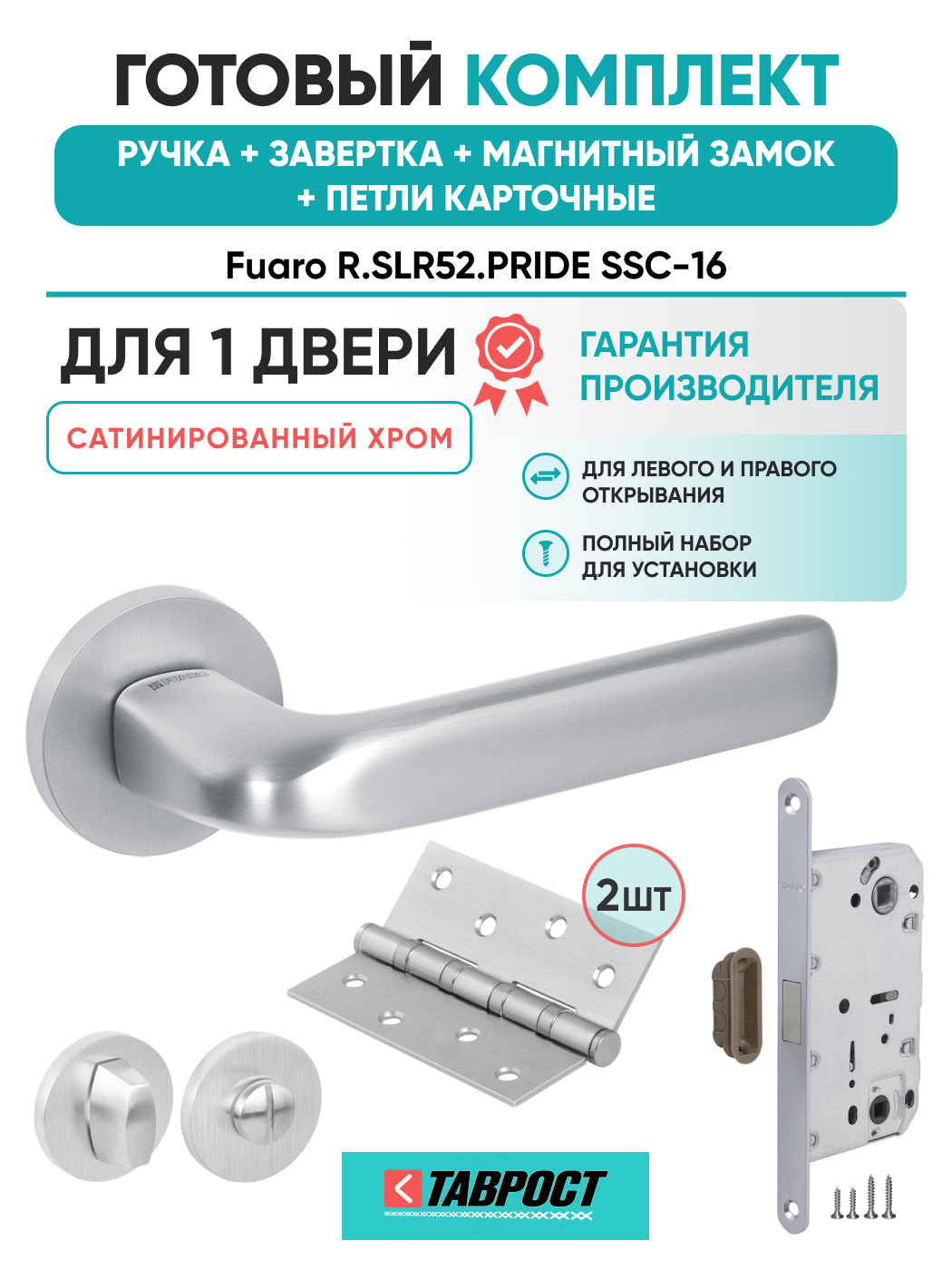 =this.property.NAME_2 (страна производства Китай , тип конструкции: ), выпускается в заводских условиях, с соблюдением всех технологических требований производства и контролем на всех этапах производства. Ручка изготовлена из материала , который широко используется при производстве дверной фурнитуры, в цвете сатинированный хром. Ручки выполнены в стиле , Комплекты, что придаст межкомнатным дверям свою индивидуальность. Ручки продаются комплектами и подходят для дверей левого и правого открывания. В комплекте содержится полный набор для установки на одну дверь (соединительный штифт, шурупы и т.д). Размеры ручки: длина , ширина , высота . Вся продукция производителя Фуаро обладает проверенным временем качеством, подкрепленным заводской гарантией.