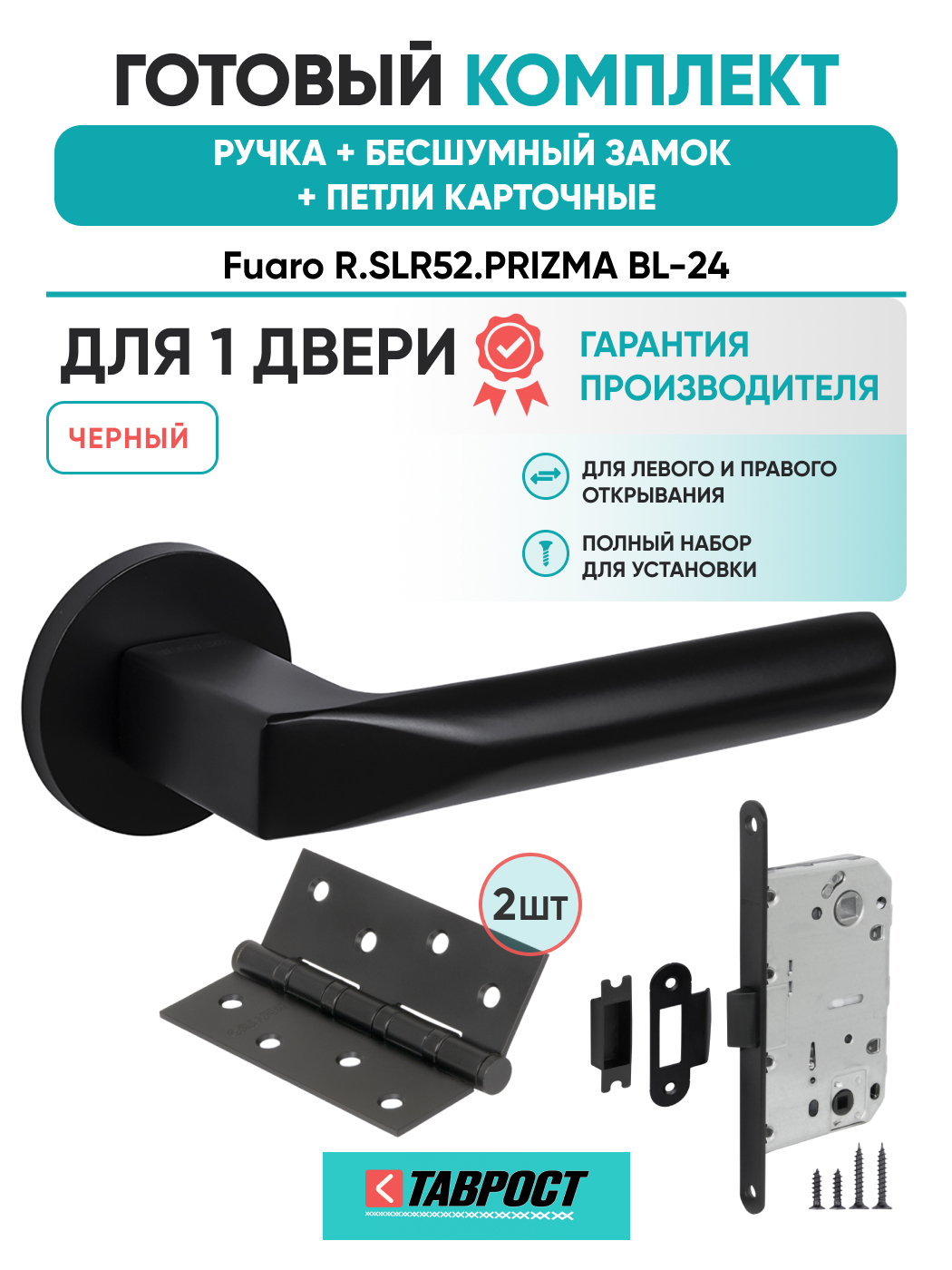 =this.property.NAME_2 (страна производства Китай , тип конструкции: ), выпускается в заводских условиях, с соблюдением всех технологических требований производства и контролем на всех этапах производства. Ручка изготовлена из материала , который широко используется при производстве дверной фурнитуры, в цвете черный. Ручки выполнены в стиле , Комплекты, что придаст межкомнатным дверям свою индивидуальность. Ручки продаются комплектами и подходят для дверей левого и правого открывания. В комплекте содержится полный набор для установки на одну дверь (соединительный штифт, шурупы и т.д). Размеры ручки: длина , ширина , высота . Вся продукция производителя Фуаро обладает проверенным временем качеством, подкрепленным заводской гарантией.