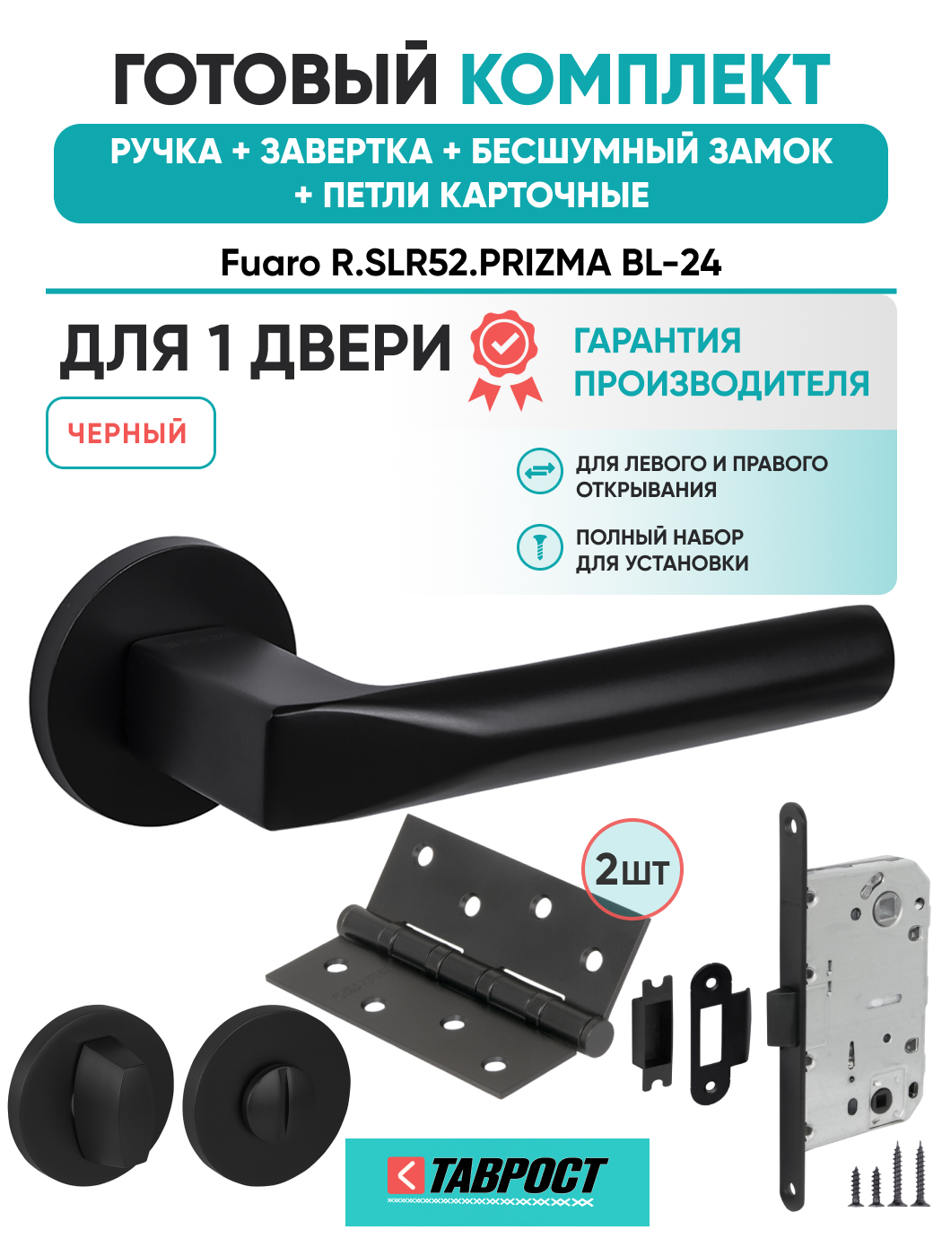=this.property.NAME_2 (страна производства Китай , тип конструкции: ), выпускается в заводских условиях, с соблюдением всех технологических требований производства и контролем на всех этапах производства. Ручка изготовлена из материала , который широко используется при производстве дверной фурнитуры, в цвете черный. Ручки выполнены в стиле , Комплекты, что придаст межкомнатным дверям свою индивидуальность. Ручки продаются комплектами и подходят для дверей левого и правого открывания. В комплекте содержится полный набор для установки на одну дверь (соединительный штифт, шурупы и т.д). Размеры ручки: длина , ширина , высота . Вся продукция производителя Фуаро обладает проверенным временем качеством, подкрепленным заводской гарантией.