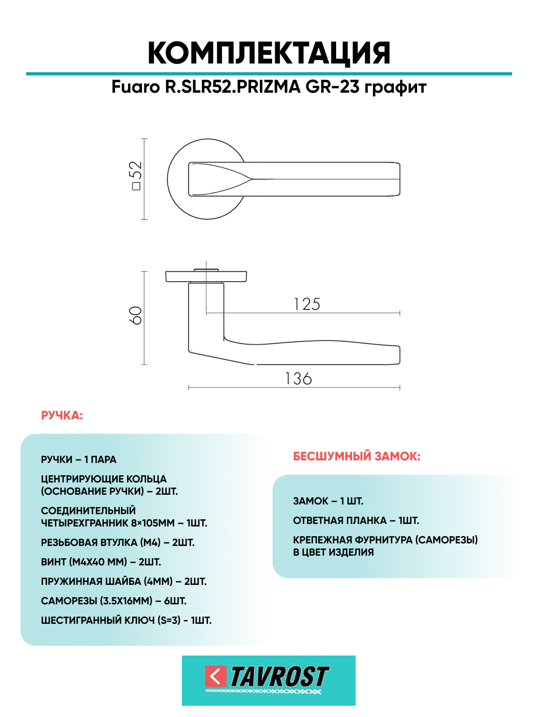 Ручка дверная Fuaro (Фуаро) межкомнатная R.SLR52.PRIZMA GR-23 графит Набор 7