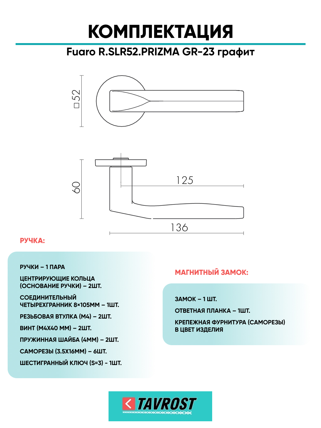 Ручка дверная Fuaro (Фуаро) межкомнатная R.SLR52.PRIZMA GR-23 графит Набор 6