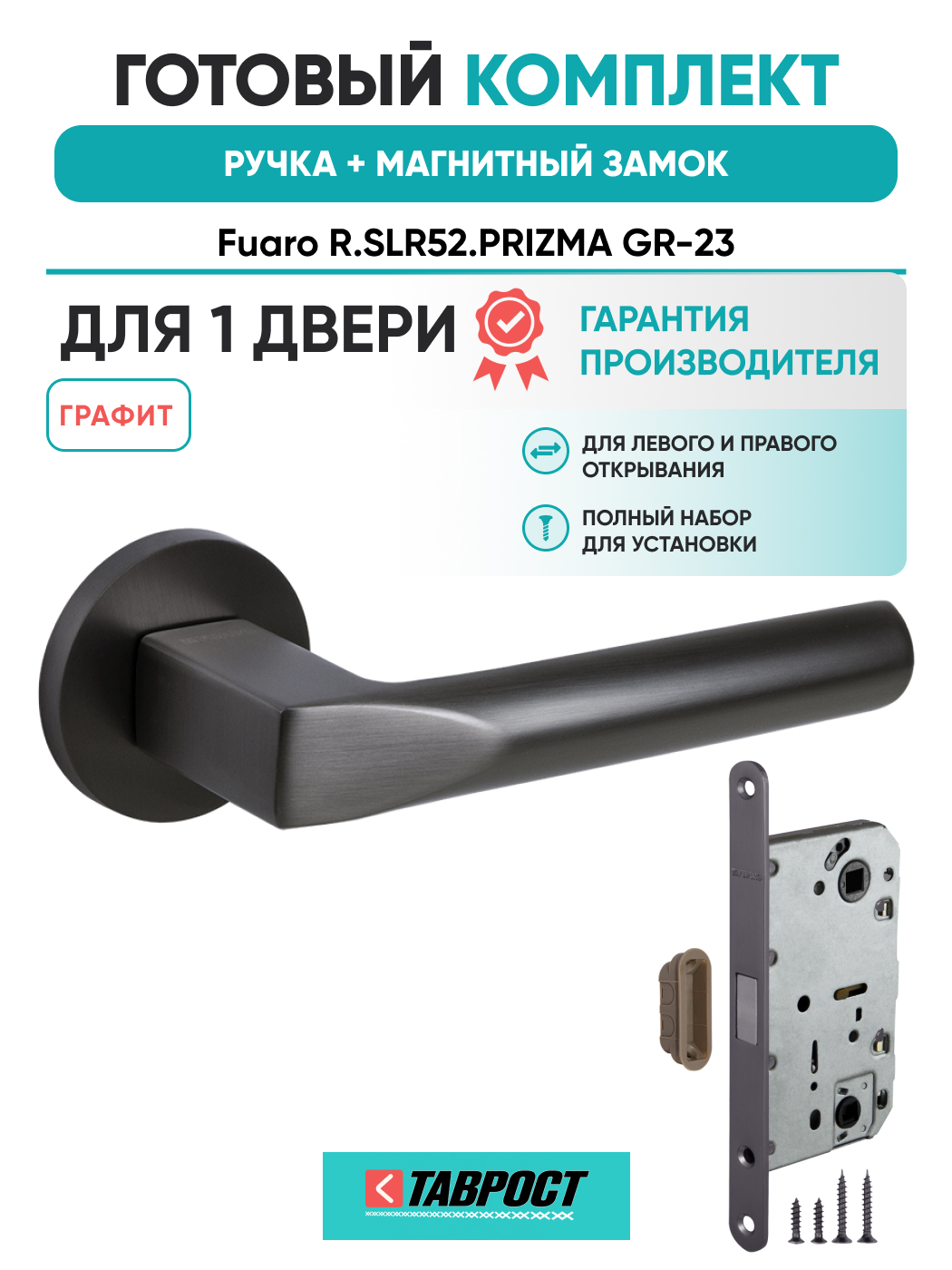 =this.property.NAME_2 (страна производства Китай , тип конструкции: ), выпускается в заводских условиях, с соблюдением всех технологических требований производства и контролем на всех этапах производства. Ручка изготовлена из материала , который широко используется при производстве дверной фурнитуры, в цвете графит. Ручки выполнены в стиле , Комплекты, что придаст межкомнатным дверям свою индивидуальность. Ручки продаются комплектами и подходят для дверей левого и правого открывания. В комплекте содержится полный набор для установки на одну дверь (соединительный штифт, шурупы и т.д). Размеры ручки: длина , ширина , высота . Вся продукция производителя Фуаро обладает проверенным временем качеством, подкрепленным заводской гарантией.