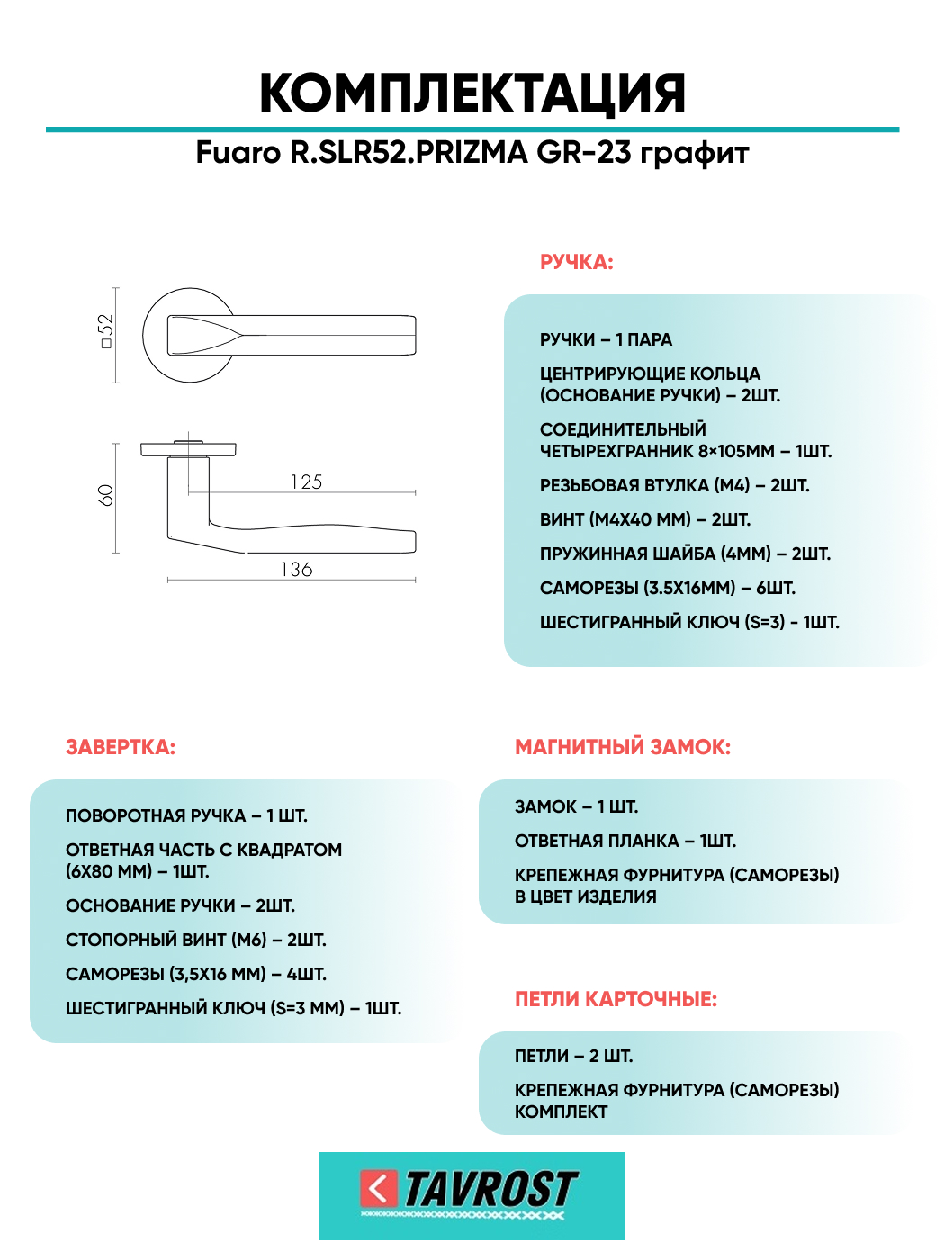 Ручка дверная Fuaro (Фуаро) межкомнатная R.SLR52.PRIZMA GR-23 графит Набор 4