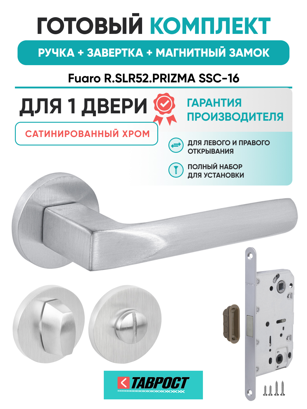 Ручка дверная Fuaro (Фуаро) межкомнатная R.SLR52.PRIZMA SSC-16 сатинированный хром Набор 2