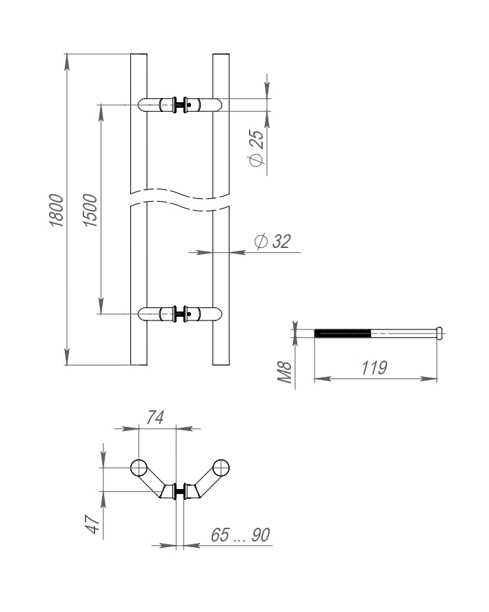 Ручка-скоба PULL.PH32/1800.45 INOX 304